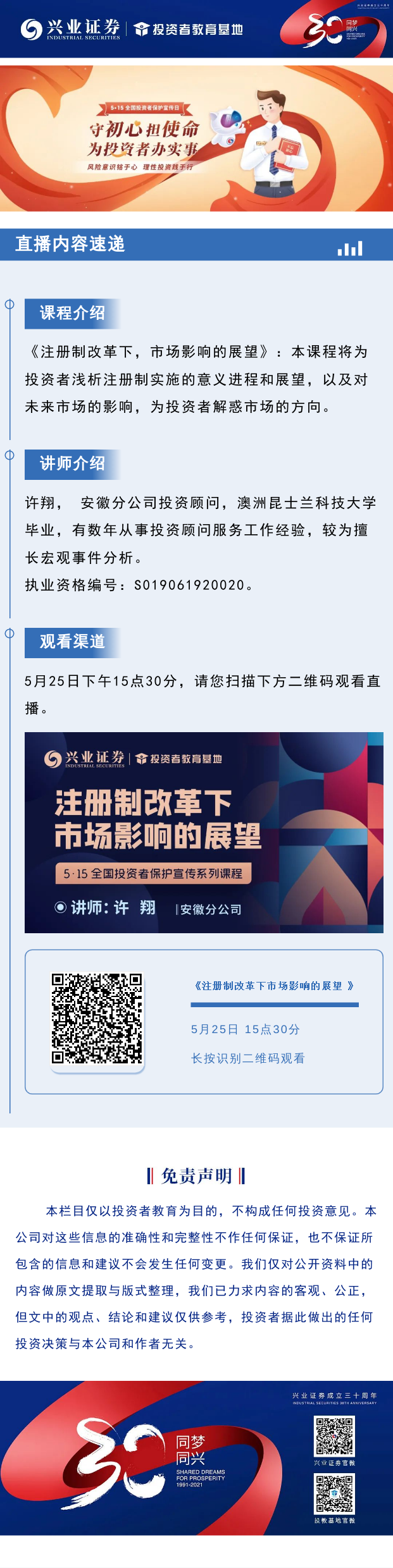 【兴·预告】15:30直播 | 注册制改革下,市场影响的展望
