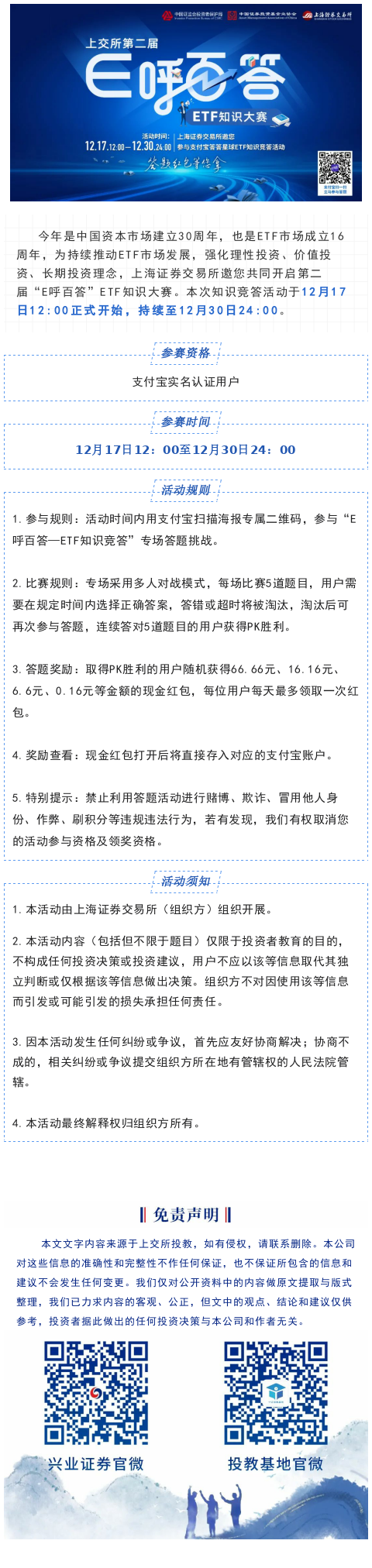 【兴·分享】“E呼百答”|上交所第二届ETF有奖知识大赛收官战!