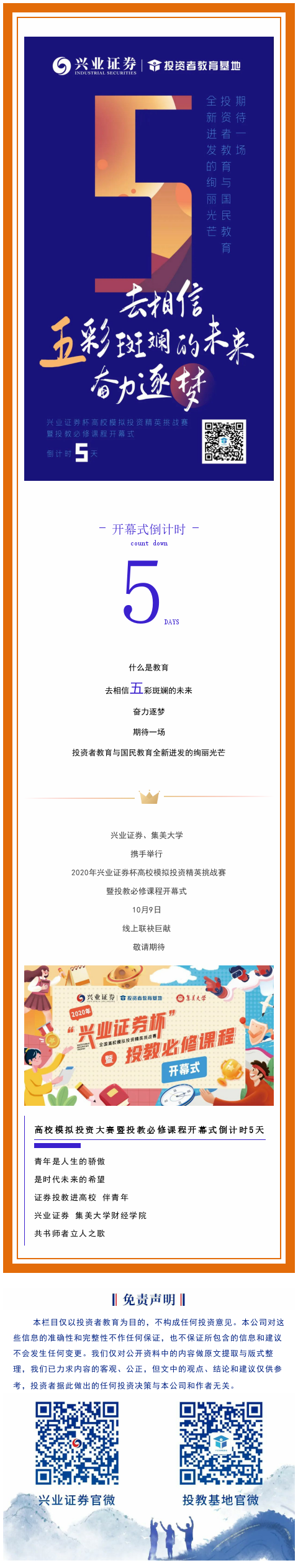 【模拟投资挑战赛暨投教必修课开幕式倒计时5天】“5”彩斑斓,期待一场投资者教育与国民教育全新迸发的绚丽光芒