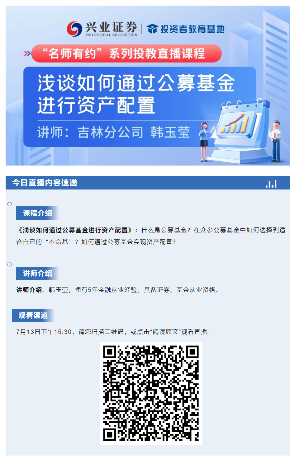 【兴·预告】15:30直播 | 浅谈如何通过公募基金进行资产配置