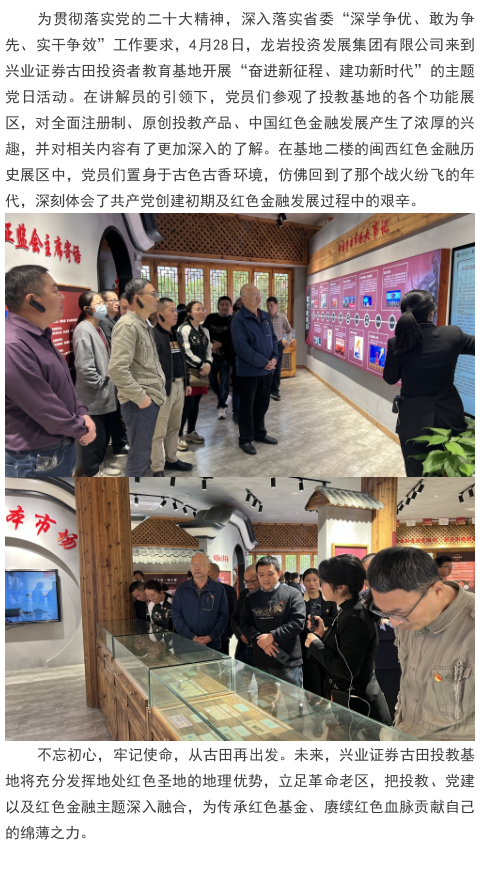 【兴·风采】龙岩投资发展集团有限公司来到兴业证券古田投资者教育基地开展“奋进新征程、建功新时代”的主题党日活动