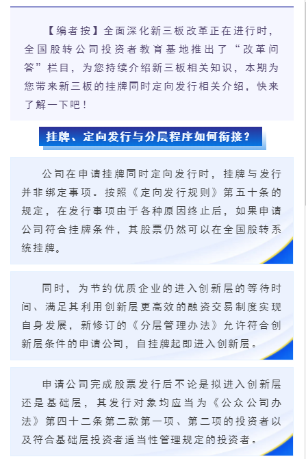 【投教·新三板新风】改革问答 | 第四十期:挂牌、定向发行与分层程序如何衔接?