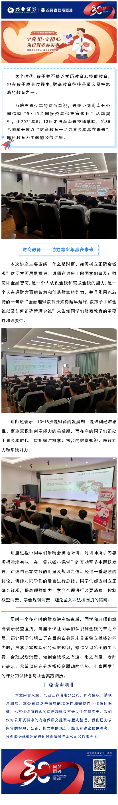 【兴·风采】5·15全国投资者保护宣传日——走进海南省技师学院