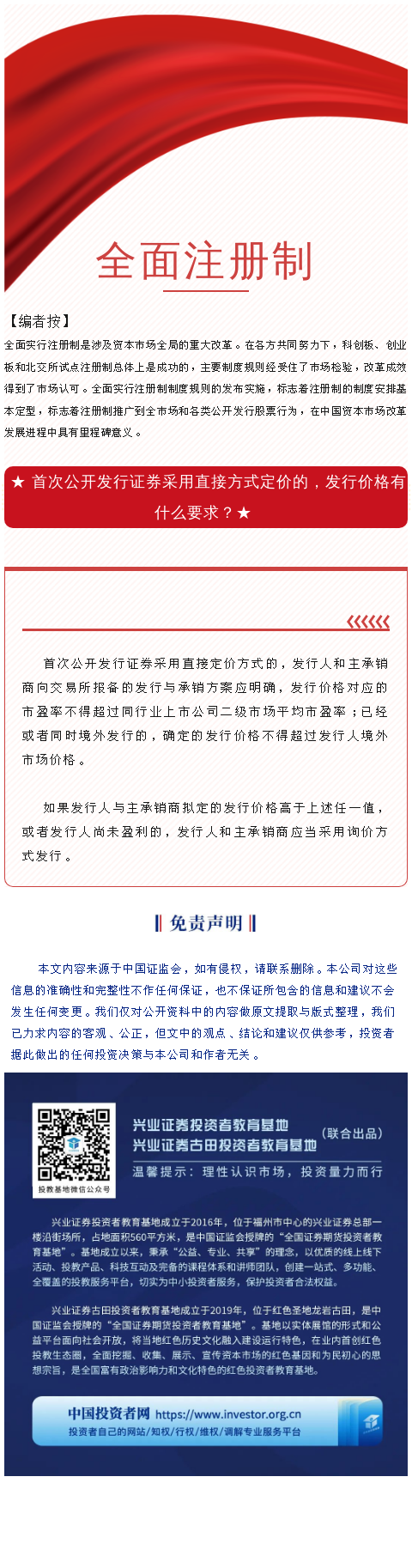 【兴·分享】全面注册制 | 投教问答47——首次公开发行证券采用直接方式定价的,发行价格有什么要求?