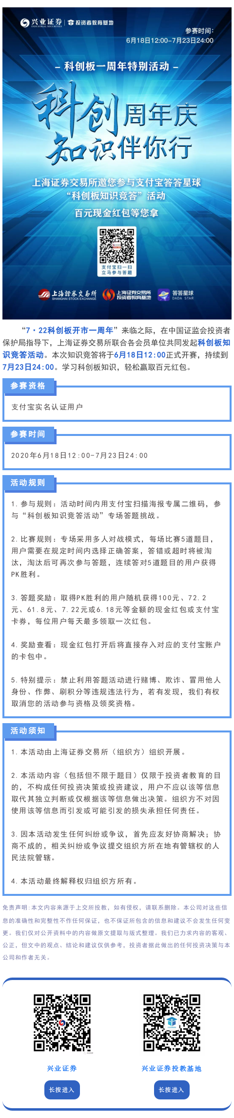 【投教·知识竞赛】科创板知识竞答百元红包等你拿