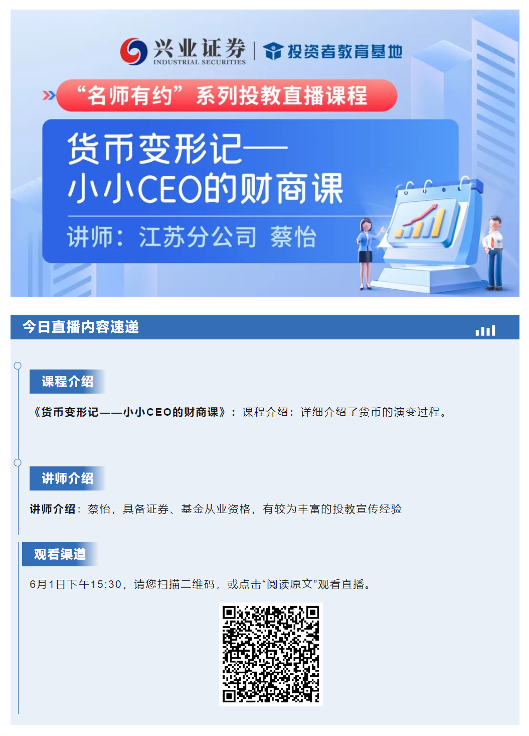 【兴·预告】15:30直播《货币变形记——小小CEO的财商课》