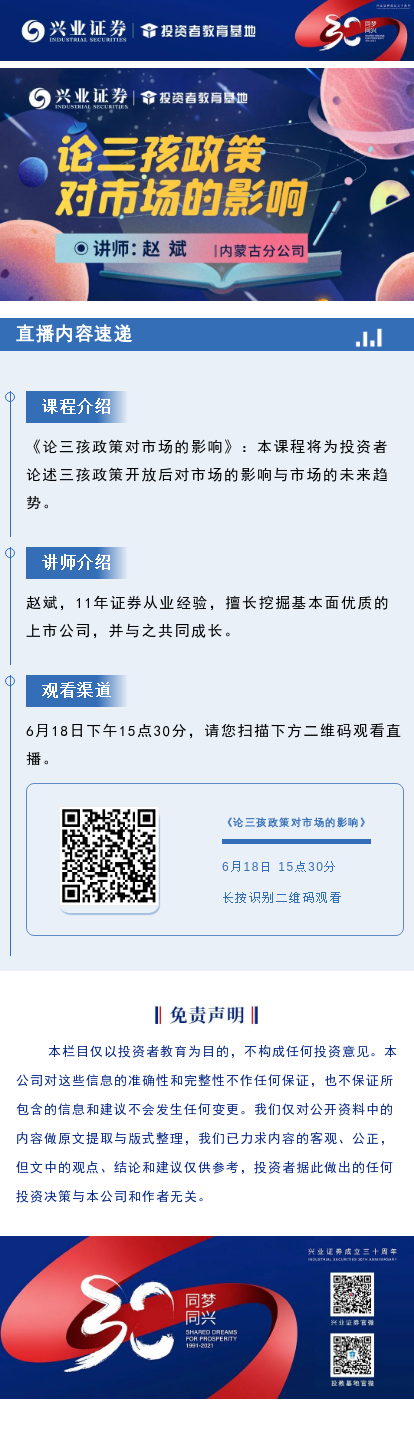 【兴·预告】15:30直播 | 论三孩政策对市场的影响