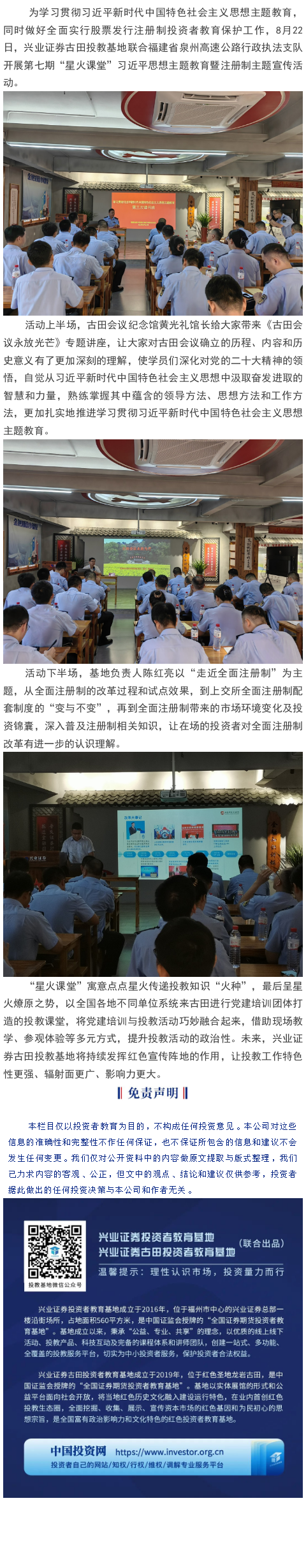 【兴·风采】兴业证券古田投教基地联合福建省泉州高速公路行政执法支队开展第七期“星火课堂”暨注册制主题宣传活动