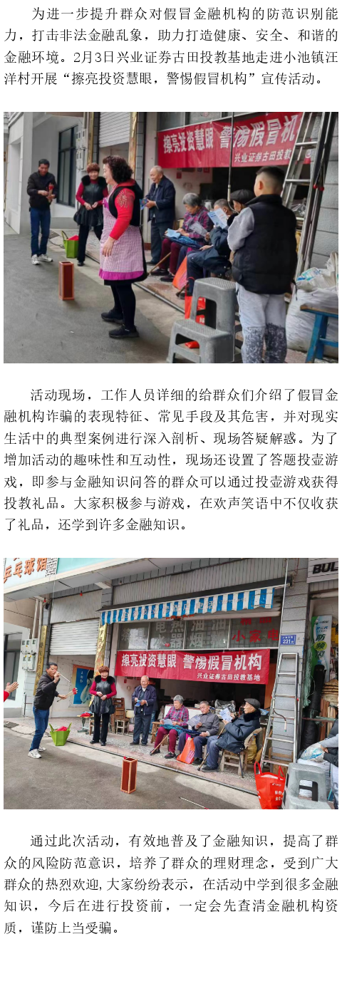 【兴·风采】兴业证券古田投教基地走进小池镇汪洋村开展“擦亮投资慧眼,警惕假冒机构”宣传活动