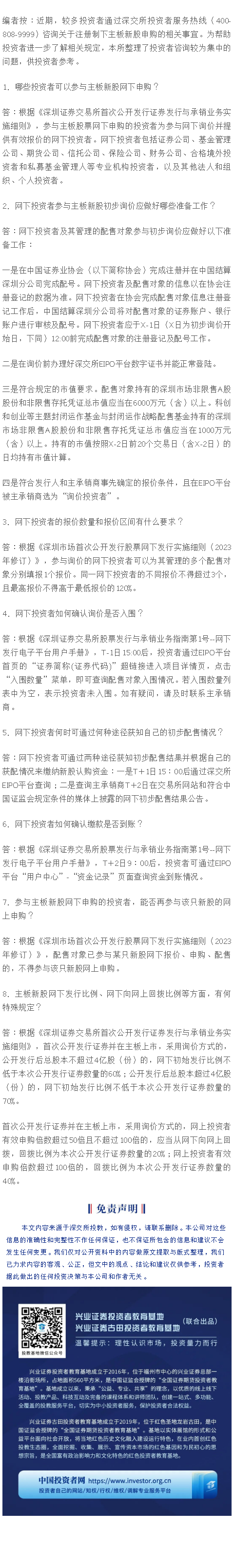 【兴·分享】深交所投教 | 投资者服务热线问答(2023年第6期)关于主板新股申购(下)