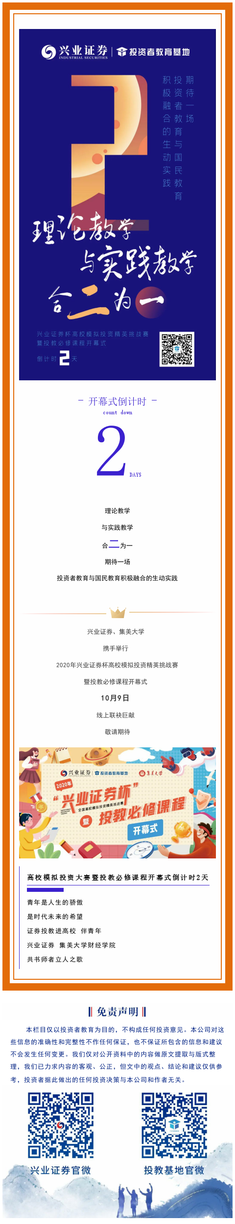 【模拟投资挑战赛暨投教必修课开幕式倒计时2天】合“2”为一,期待一场投资者教育与国民教育积极融合的生动实践