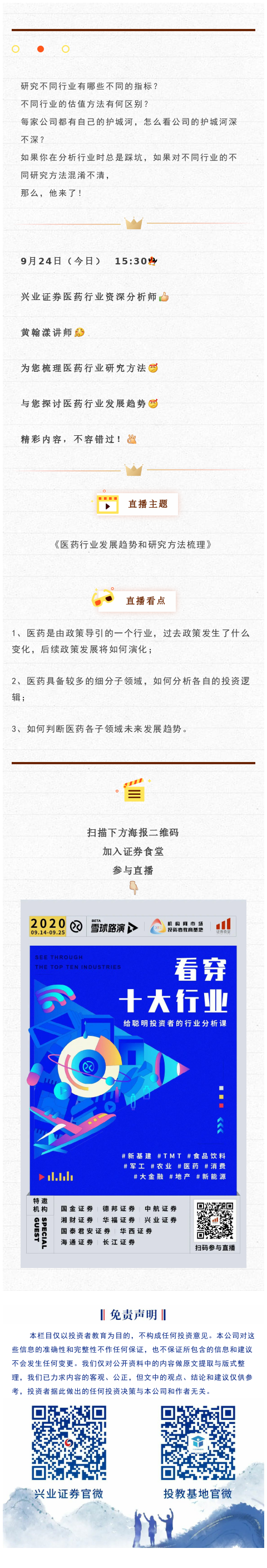 【直播活动】兴业证券医药行业资深分析师为您梳理医药行业发展趋势