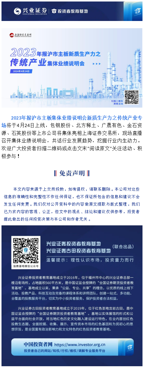 【兴·分享】活动预告 | 2023年报沪市主板集体业绩说明会——新质生产力之传统产业专场