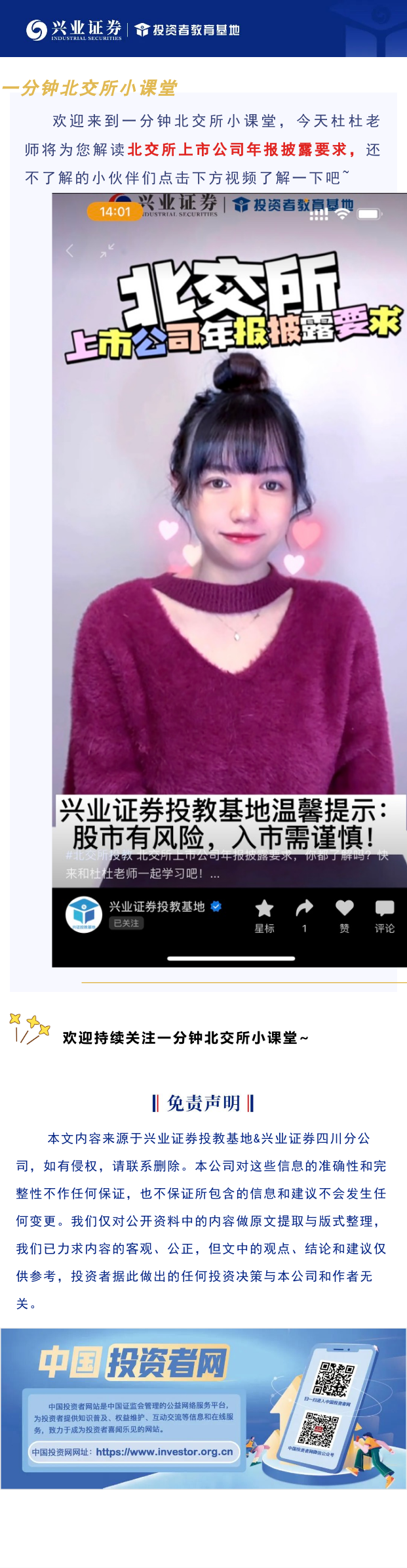 【兴·原创】一分钟北交所小课堂 | 北交所上市公司年报披露要求