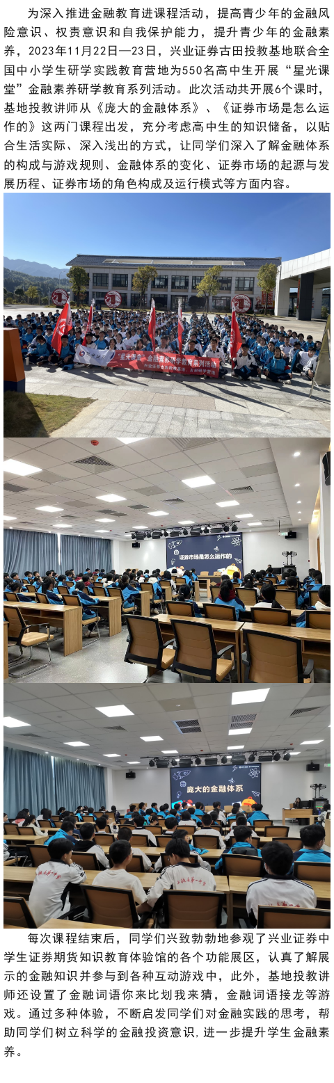 【兴·风采】兴业证券古田投教基地联合全国中小学生研学实践教育营地开展“星光课堂”金融素养研学教育系列活动