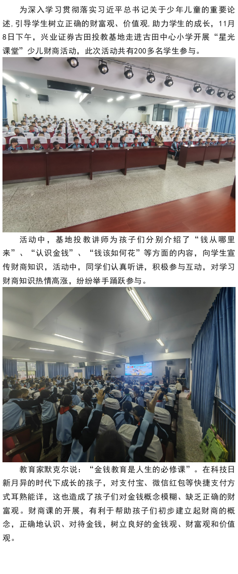 【兴·风采】兴业证券古田投教基地走进古田中心小学开展“星光课堂”少儿财商活动