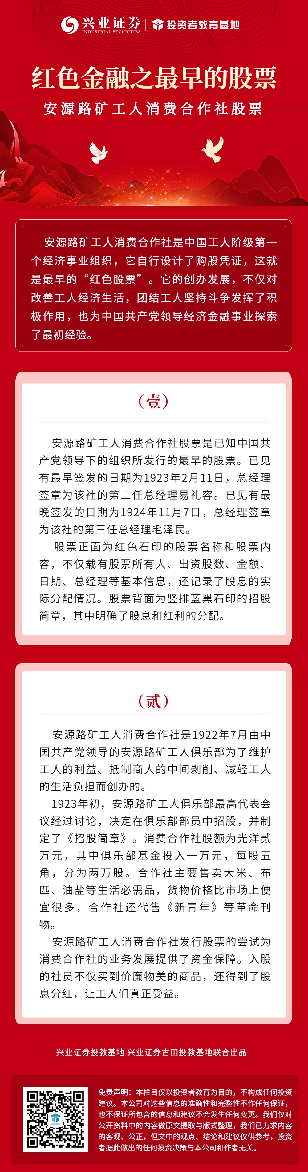 【兴·原创】红色金融 | 最早的股票:安源路矿工人消费合作社股票