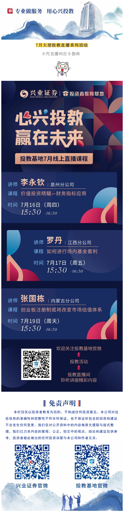 【投教·兴预告】今日直播|价值投资精髓--财务指标应用