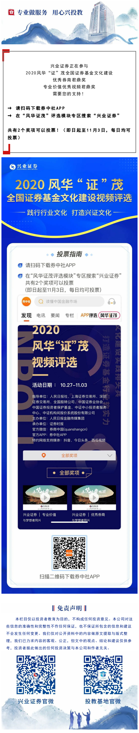 【投票】最后两天!2020风华“证”茂证券基金文化建设君鼎奖评选,请为兴业证券投上一票!