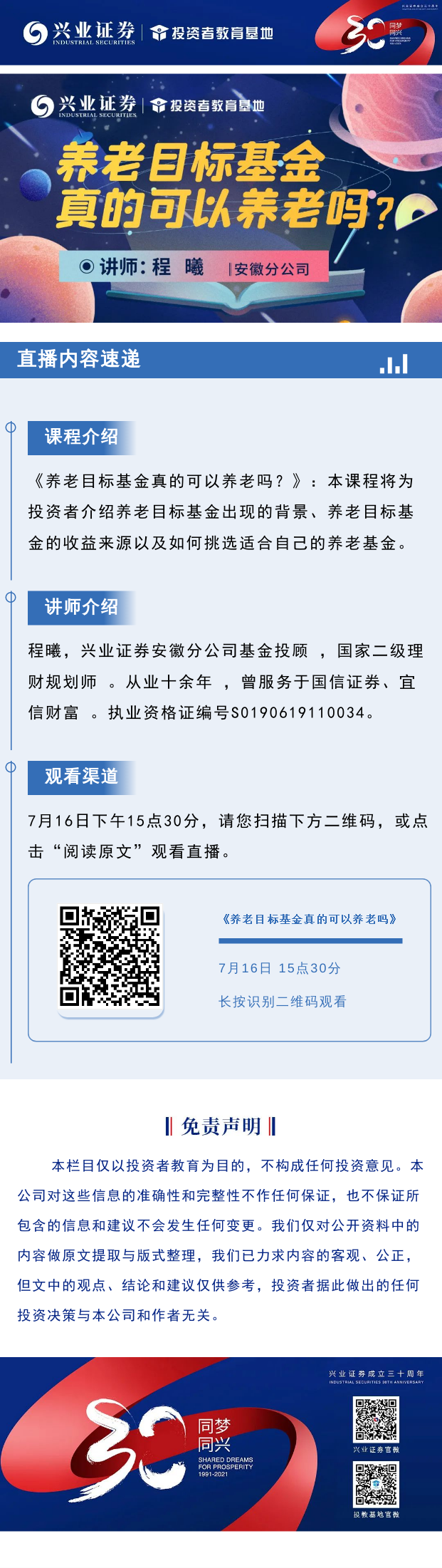 【兴·预告】15:30直播 | 养老目标基金真的可以养老吗?
