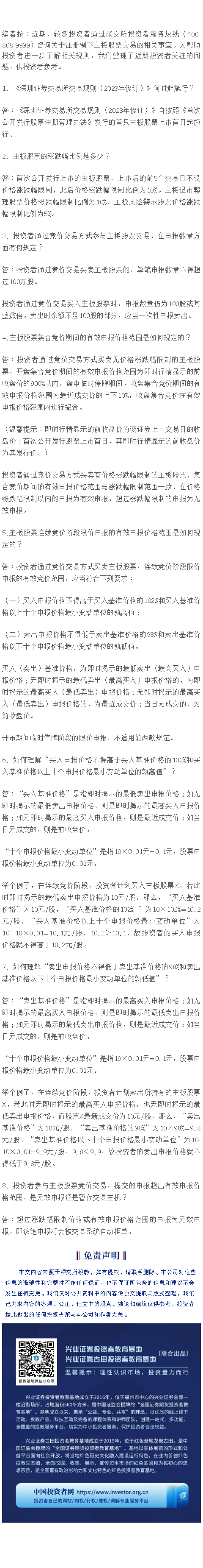 【兴·分享】深交所投教|投资者服务热线问答(2023年第2期)关于主板股票交易(上)