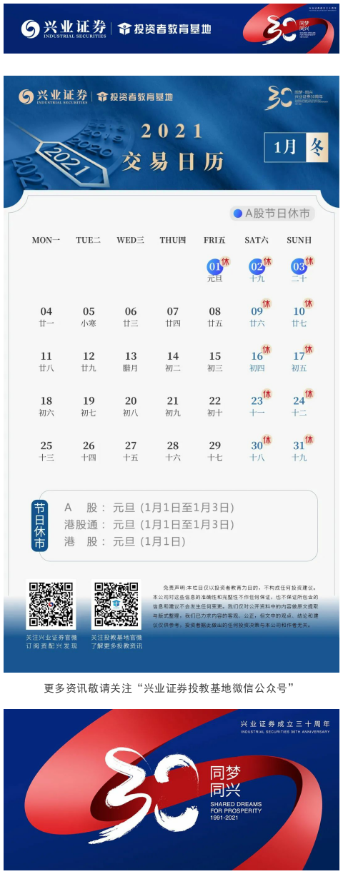 【兴·日历】2021年交易日历 | 一月