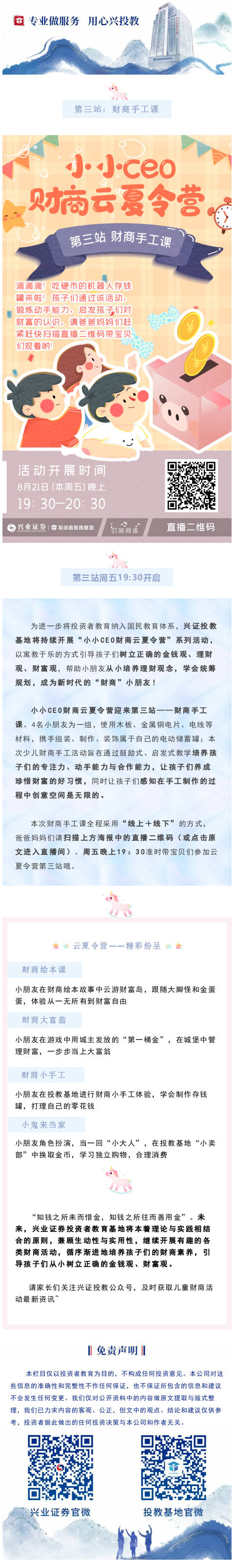【少儿财商】小小CEO财商云夏令营第三站即将登场!