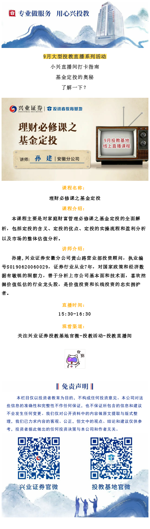 【兴预告】今日直播——基金定投的奥秘,了解一下?