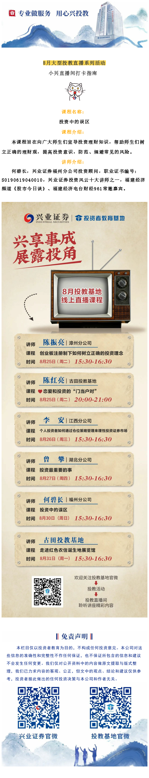 【兴预告】今日直播(闽江学院专场)——投资中的误区,15:30开启!