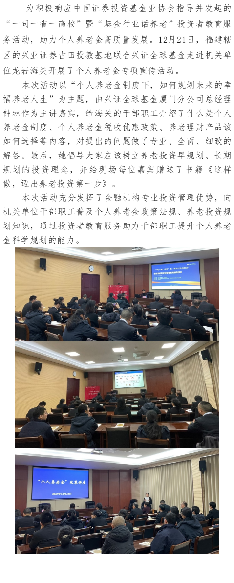 【兴·风采】兴业证券古田投教基地联合兴证全球基金走进龙岩海关开展个人养老金专项宣传活动