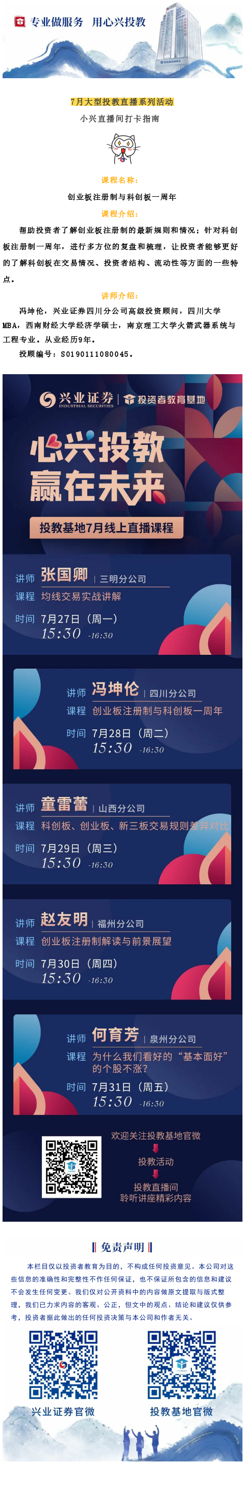 【兴预告】今日直播放送 |创业板注册制与科创板一周年