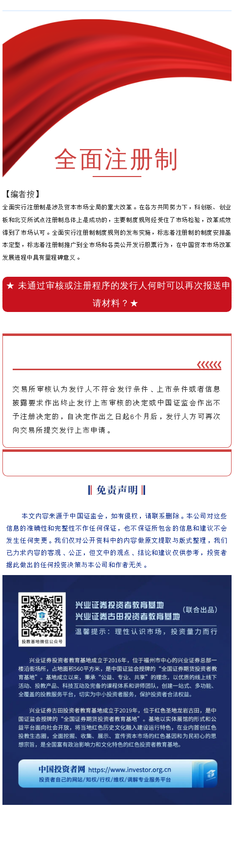 【兴·分享】全面注册制 | 投教问答35——未通过审核或注册程序的发行人何时可以再次报送申请材料?