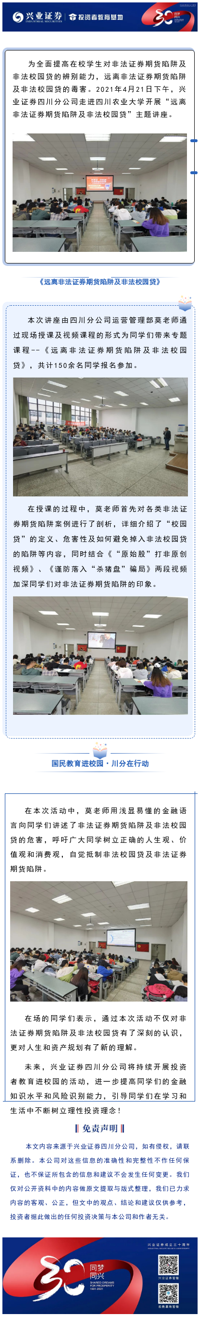 【兴·风采】兴业证券四川分公司走进四川农业大学开展5.15国民教育系列活动