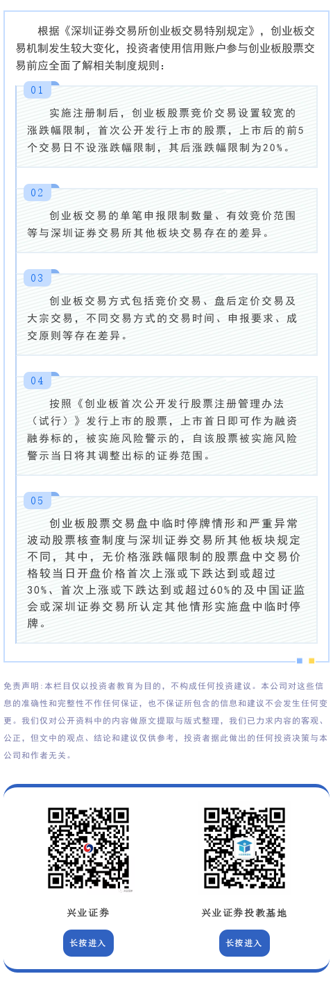 【投教·创业板】信用账户参与创业板股票交易特别告知一:交易机制变化