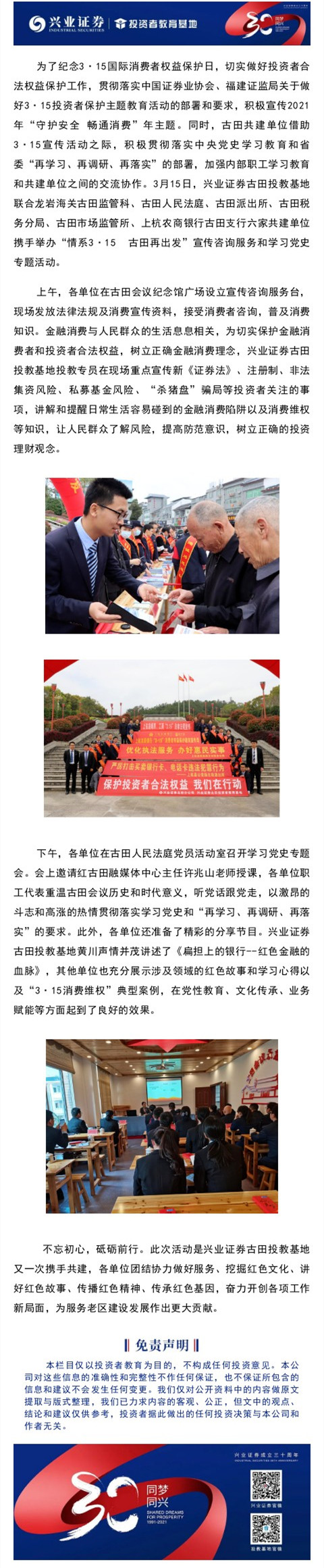 【兴·风采】“情系3·15 古田再出发”——兴业证券古田投教基地联合六家共建单位开展专题活动