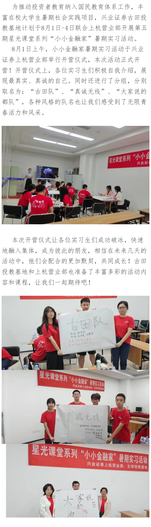 【兴·风采】兴业证券古田投教基地“小小金融家”暑期实习活动正式开营!