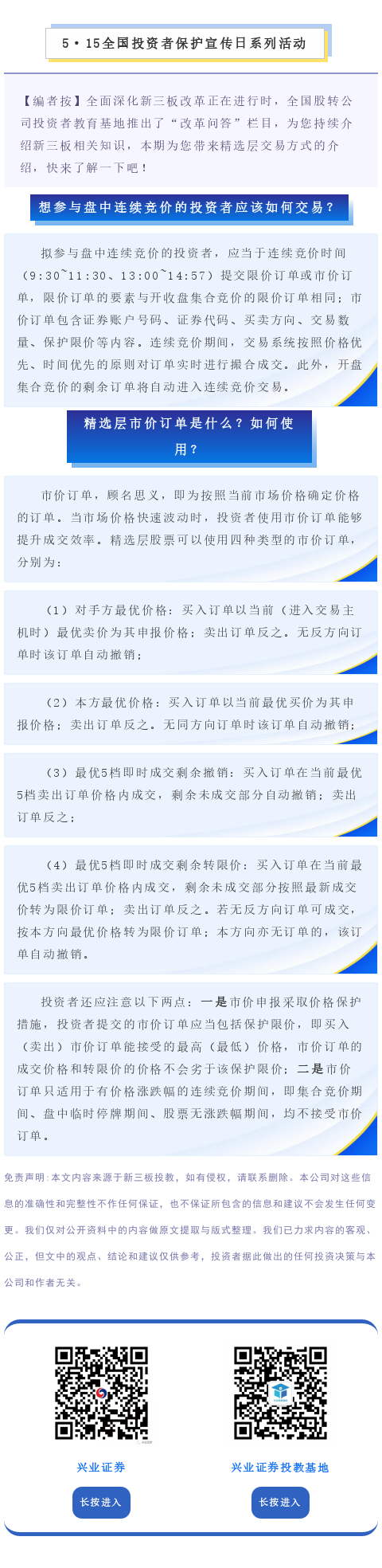 【投教·新三板新风】改革问答 | 第二十五期:想参与盘中连续竞价的投资者应该如何交易?精选层市价订单是什么?如何使用?