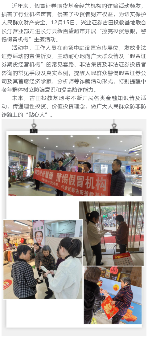 【兴·风采】兴业证券古田投教基地联合长汀营业部开展“擦亮投资慧眼,警惕假冒机构”主题活动