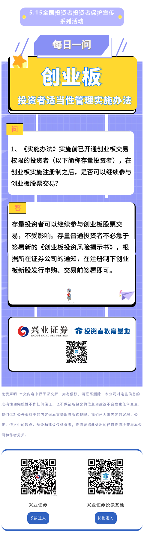 【投教·创业板】创业板投资者适当性管理实施办法问答