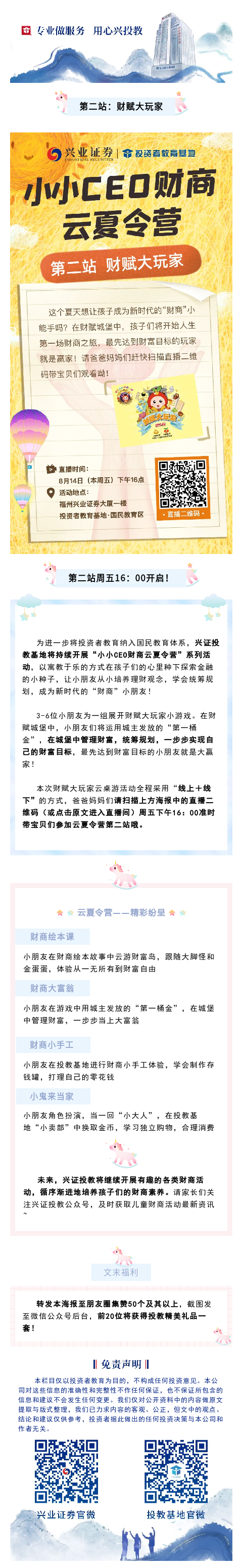 【少儿财商】小小CEO财商“云”夏令营第二站:明日16:00火热来袭