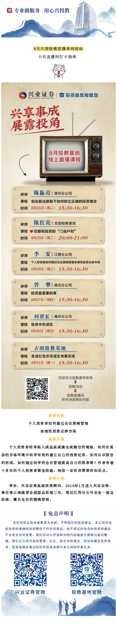 【兴预告】今日直播|个人投资者如何通过仓位策略管理来理性投资证券市场