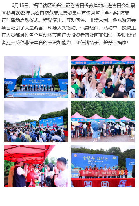 兴业证券古田投教基地走进古田会址景区参与2023年龙岩市防范非法集资集中宣传月暨“全福游 防非行”活动启动仪式