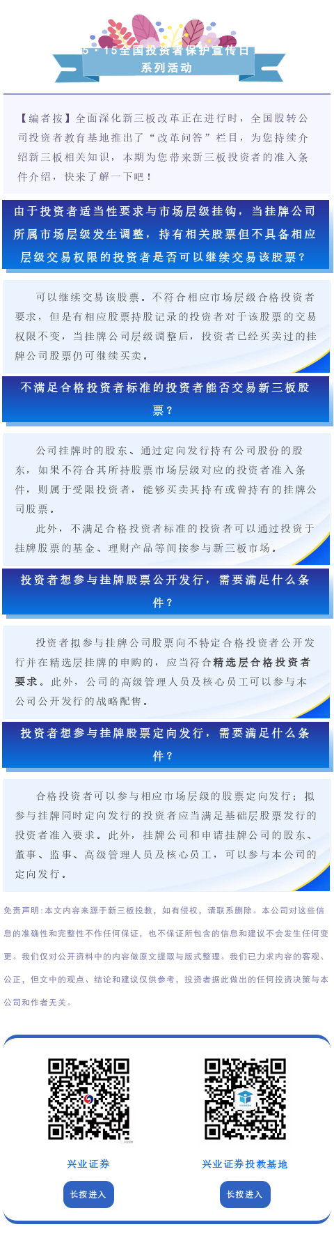 【投教·新三板新风】改革问答 | 第十四期:新三板投资者的准入条件介绍(二)