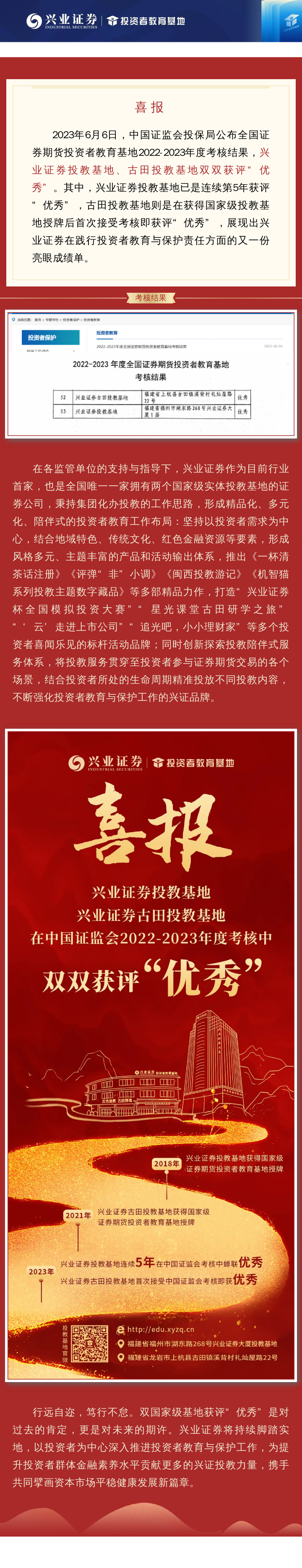 双优秀!兴业证券投教基地、古田投教基地喜获2022-2023年度证监会考核“优秀”评级