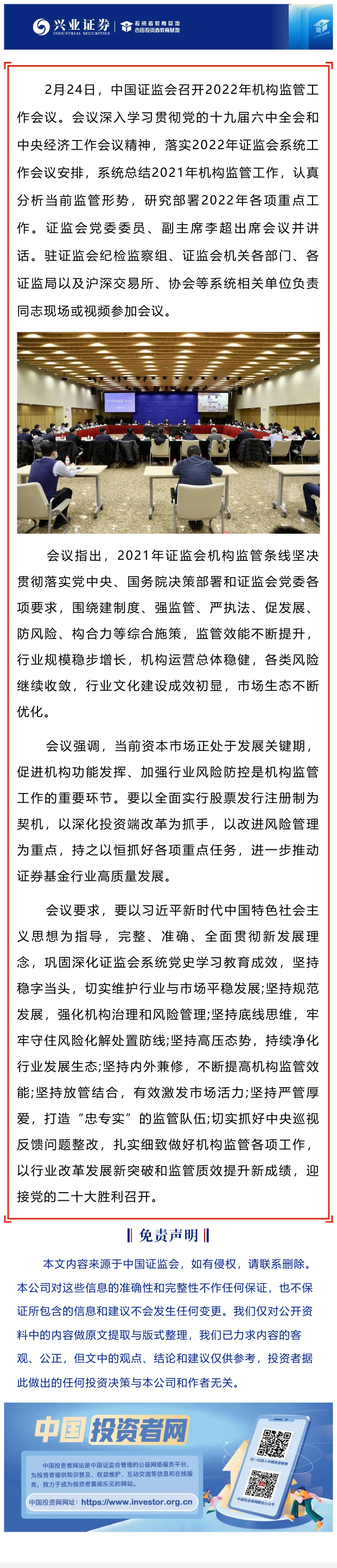 【兴·分享】中国证监会召开2022年机构监管工作会议