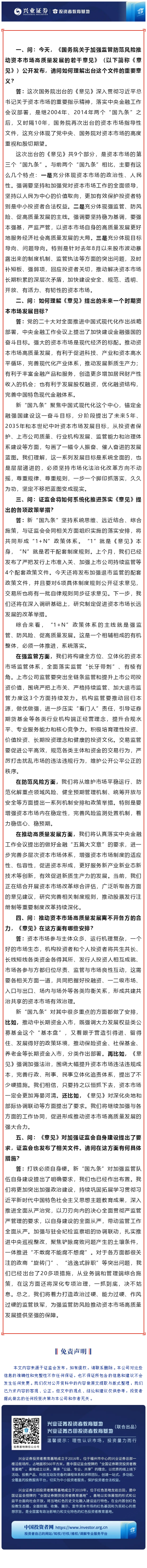 【兴·分享】深刻领会资本市场新“国九条”的精神实质——证监会党委书记、主席吴清就贯彻落实新“国九条”接受记者专访