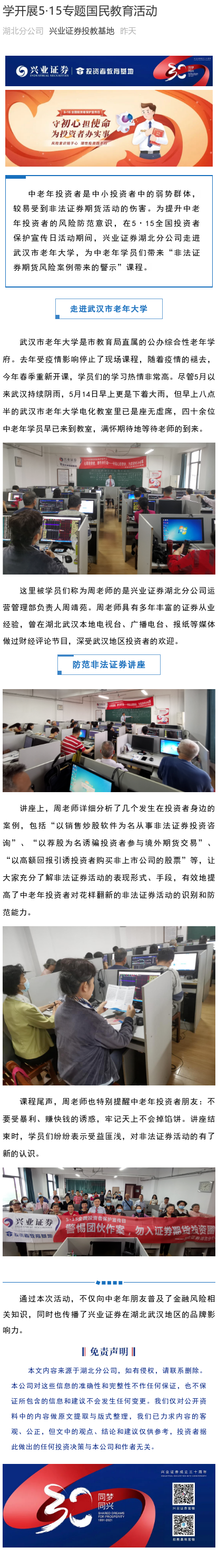 【兴·风采】兴业证券湖北分公司走进武汉市老年大学开展5·15专题国民教育活动