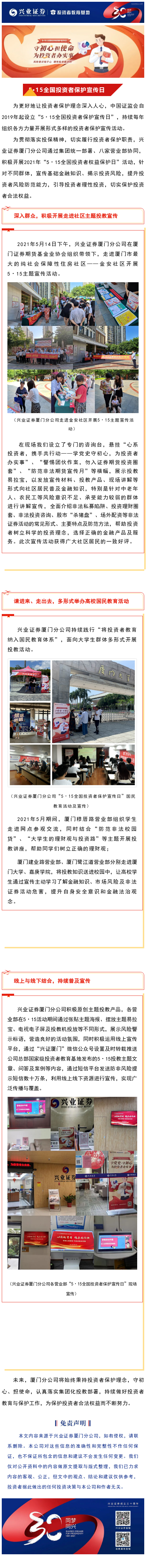 【兴·风采】兴业证券厦门分公司积极开展5·15全国投资者保护宣传日活动