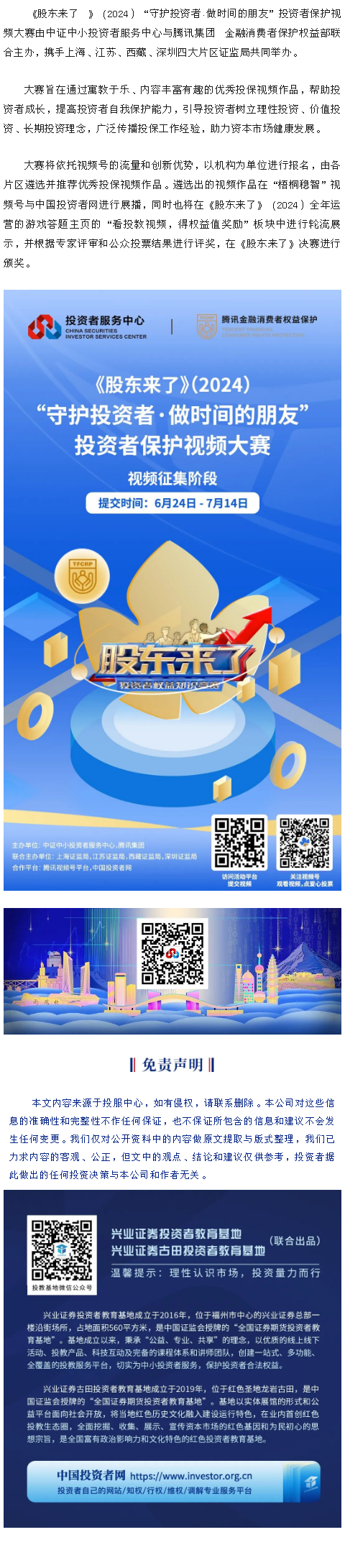 【兴·分享】《股东来了》(2024)“守护投资者·做时间的朋友”投资者保护视频大赛正式启动