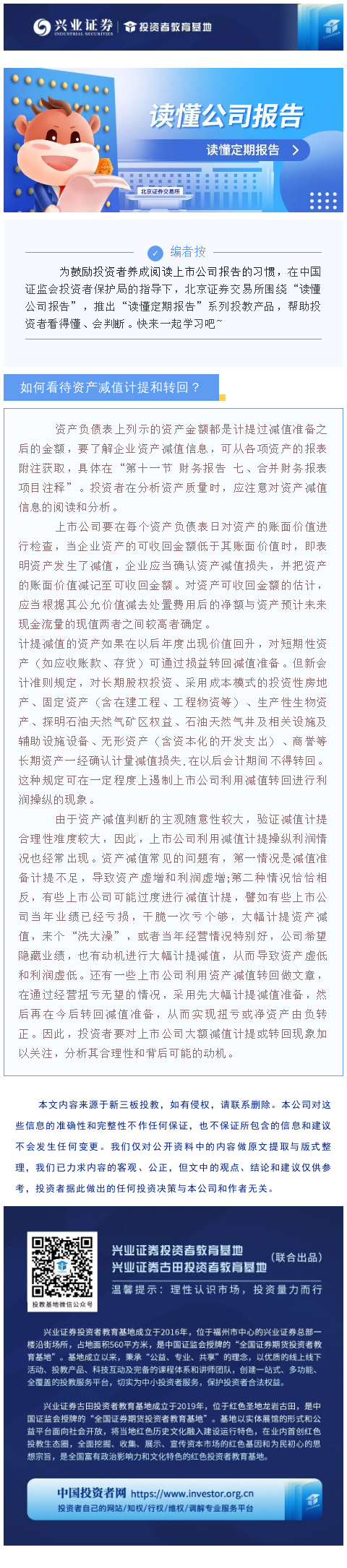 【兴·分享】读懂定期报告 | 第四十九期:如何看待资产减值计提和转回?